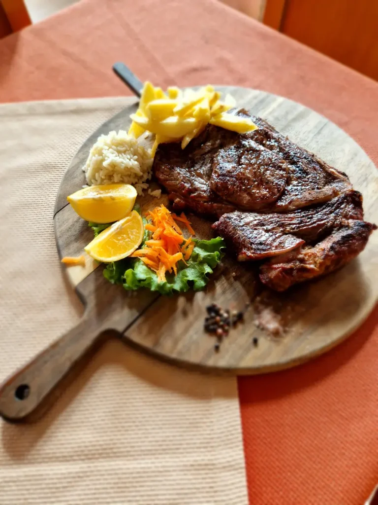 Στην ταβέρνα μας θα δοκιμάσετε ψητά από ντόπια κρέατα της περιοχής μας, ενώ έχουμε και μεγάλη ποικιλία από μαγειρευτά φαγητά.